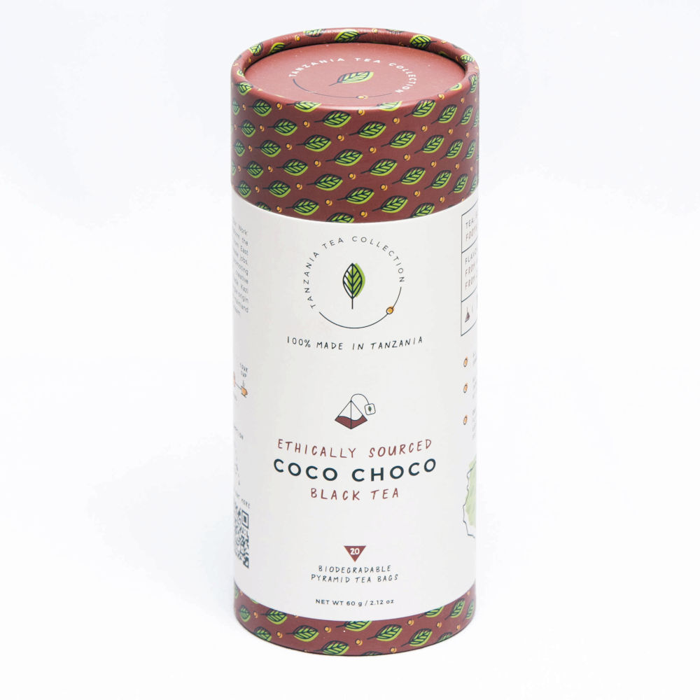 02 Coco Choco, Schwarztee mit Kakao/Kokos, 20 Pyramidenteebeutel à 3 g in Kartonrolle