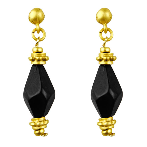 073352 Ohrhänger Kantperle oval, schwarz TAGUA, Legierung vergoldet