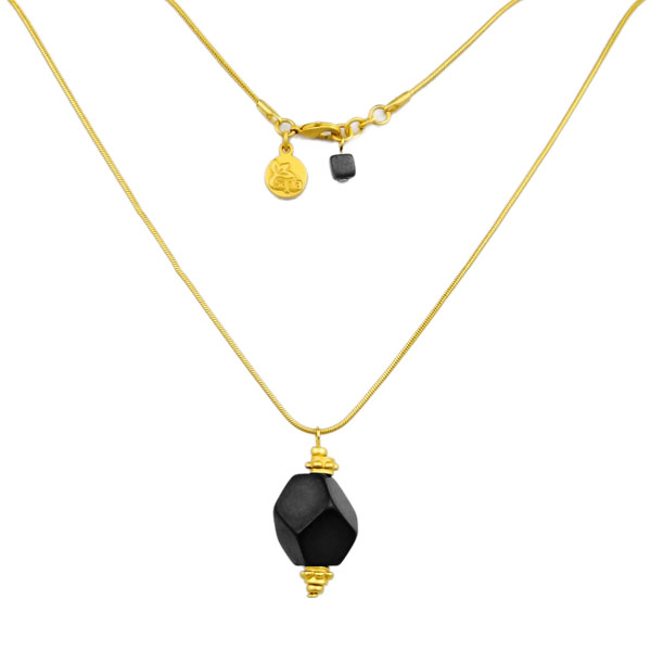 073355 Kette Tagua-Kantperle schwarz, vergoldet SONDERPREIS