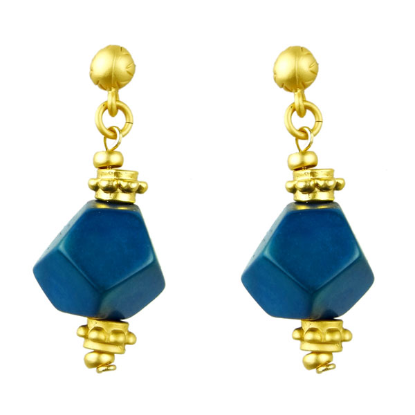 073357 Ohrringe Tagua-Kantperle blau, vergoldet SONDERPREIS