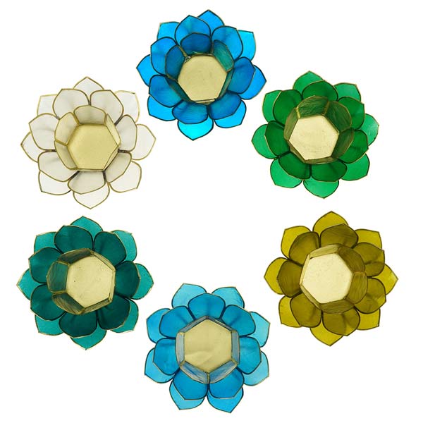 081836 Kerzenhalter LOTUS mini blau/grün, Capiz