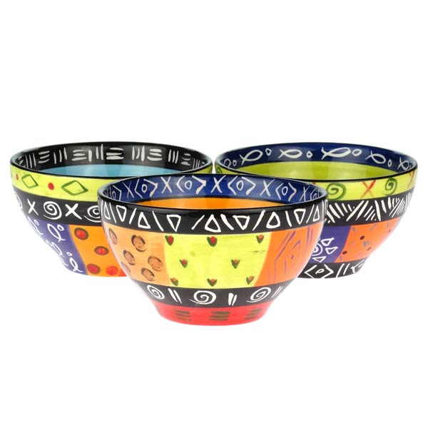 082045 Schale 12cm MULTICOLOURED ETHNIC, Keramik Kapula