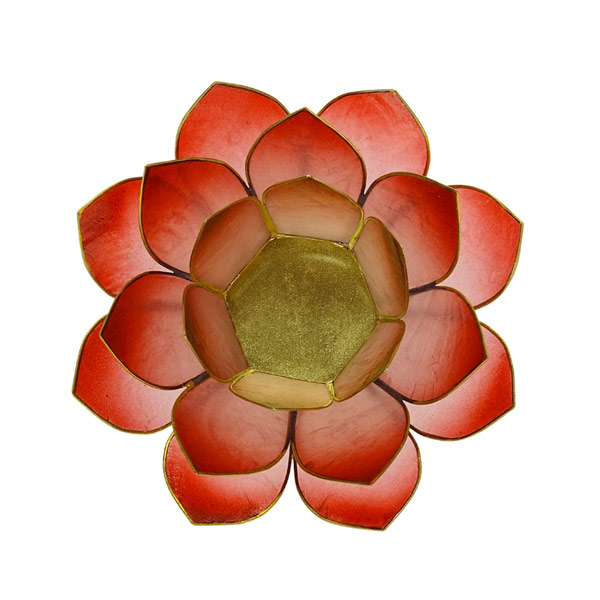 084757 Lotus Teelichthalter rot 14cm, Capiz