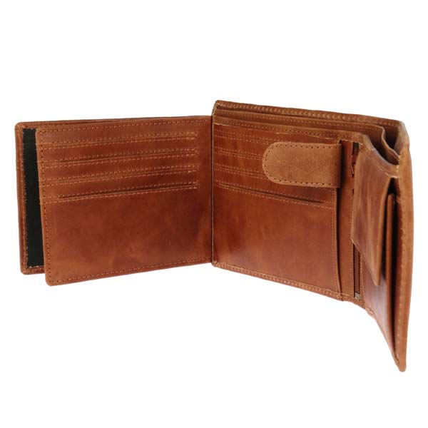 089141 Börse Vintage-CASUAL 12,5x9,5cm RFID sec. braun, Rindsleder