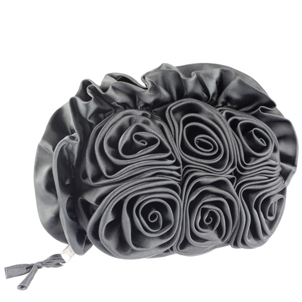 090393 Tasche Clutch Rosette, silbergrau Seide
