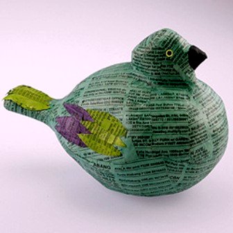 090523 Vogel schwimmend L, grünblau Pappmaché
