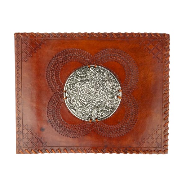 092111 Fotoalbum braun L 28x23cm Metalldeko, Leder