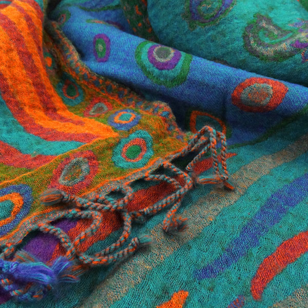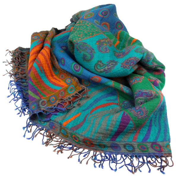 201257 Wolldecke Plaid MODERN INDIA türkis