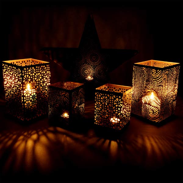 205654 Windlicht 13x13x22cm HARMONY schwarz-gold
