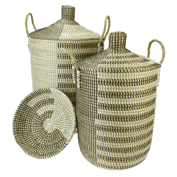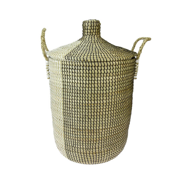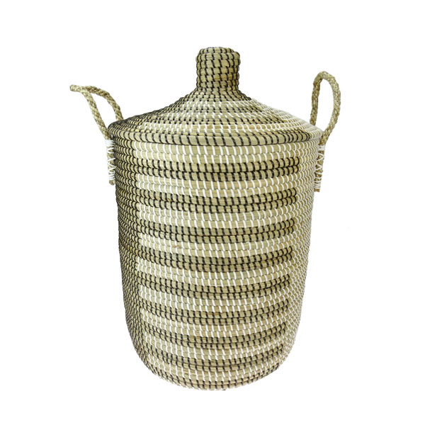 207446 Wäschekorb M, Blocks schwarz-weiß, Seegras