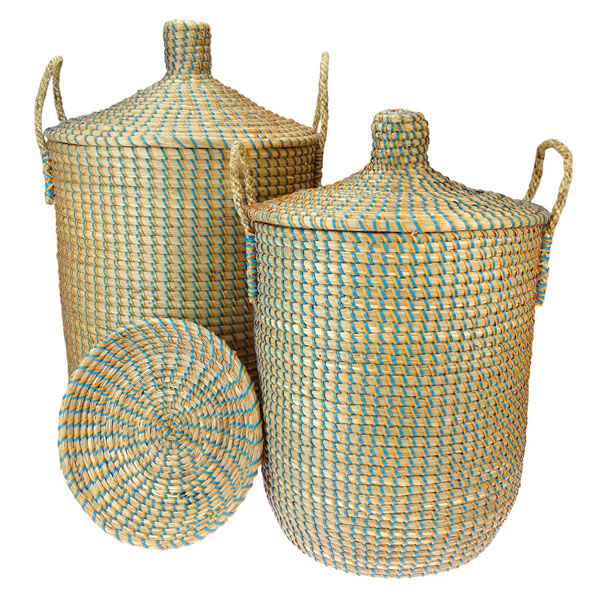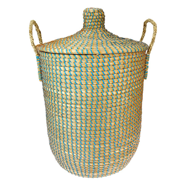 207447 Wäschekorb L, Doublestrap blau- orange, Seegras
