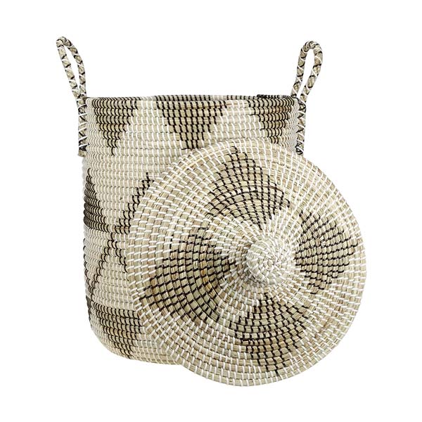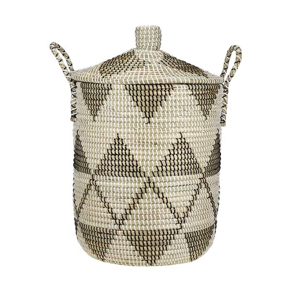 207452 Wäschekorb M, Triangle schwarz-weiß, Seegras