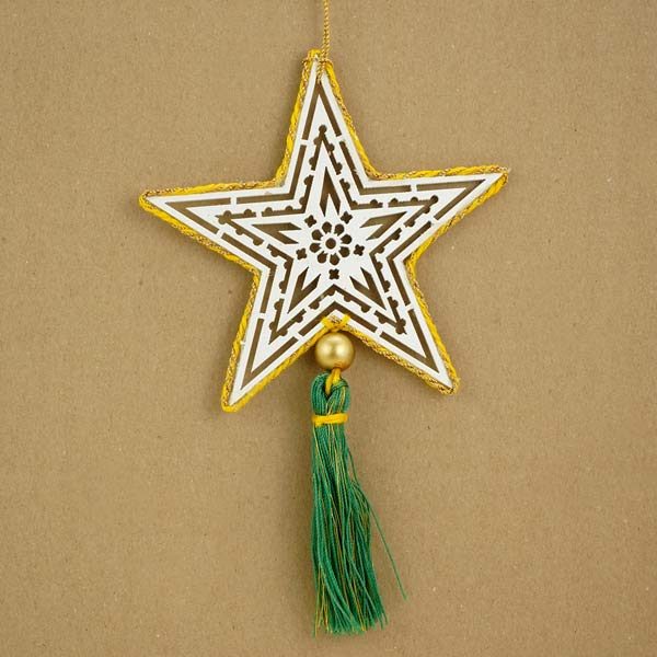 209316 Stern Anhänger TUSSEL 10cm weiß, MDF