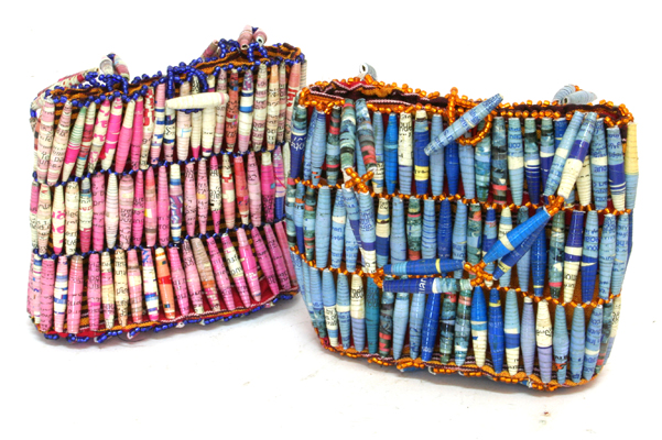 21304 Handtäschen Papierperlen farbl. sort., Innenfutter