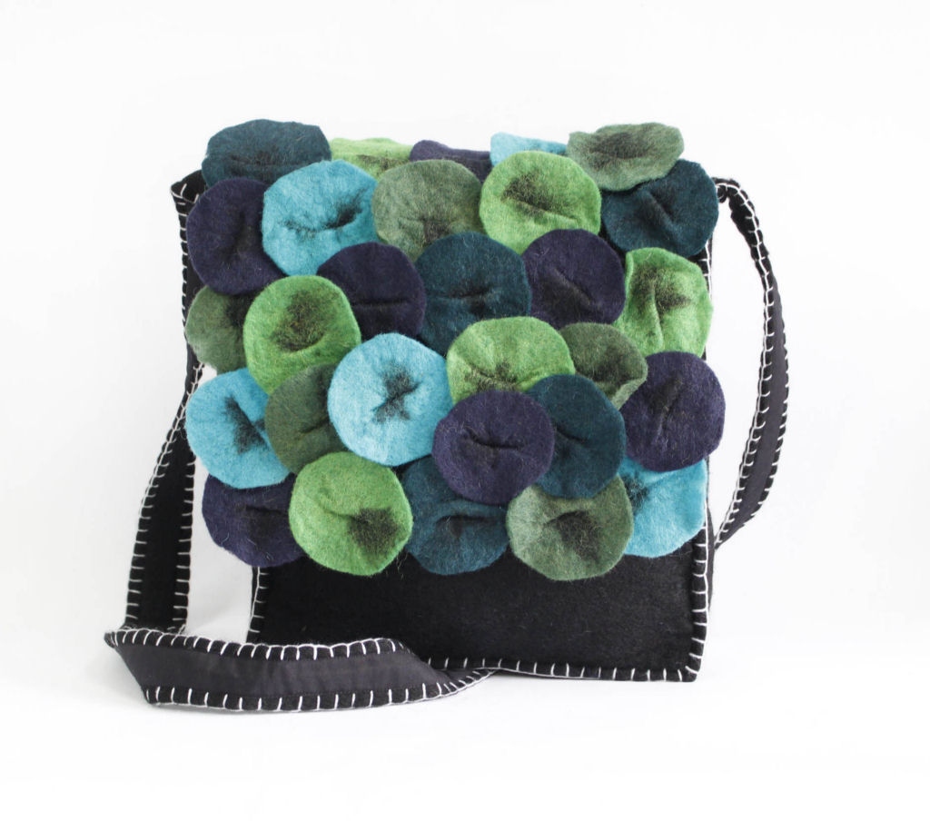 25031 Filz-Tasche "Cornelia" blau-grüne Blüten