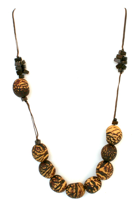 37134 Tagua-Halskette, 10 gr. Perlen, braun gespr.