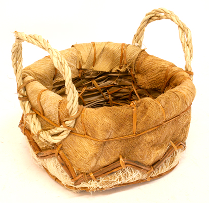 42001 Kokosrinden-Übertopf m 2 Burigriffen, quadr.