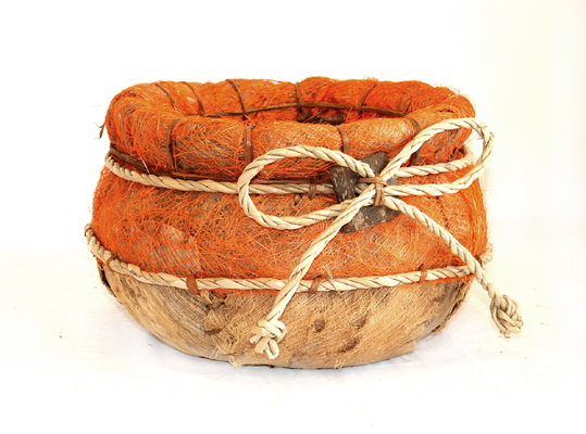 42081 Kokos/Bananenblatt Übertopf, Kokosknopf, orange