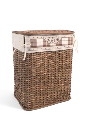 47003 Wäschekorb Rattan, braun mit Stoffeinlage Gr.1