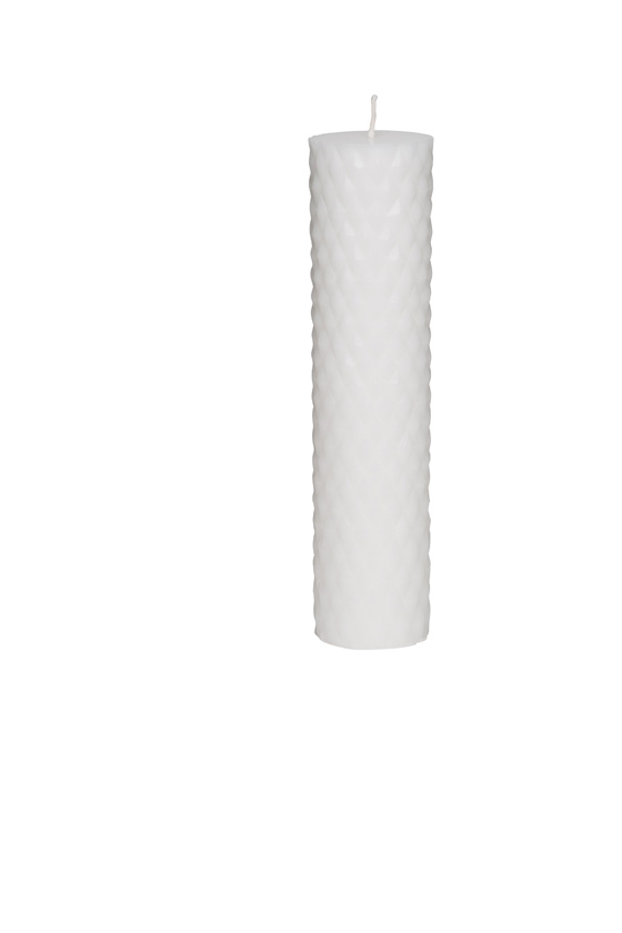 763341901 Stumpenkerze Rautenstruktur L weiß