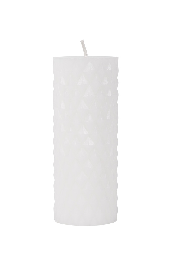 763342001 Stumpenkerze Rautenstruktur M weiß