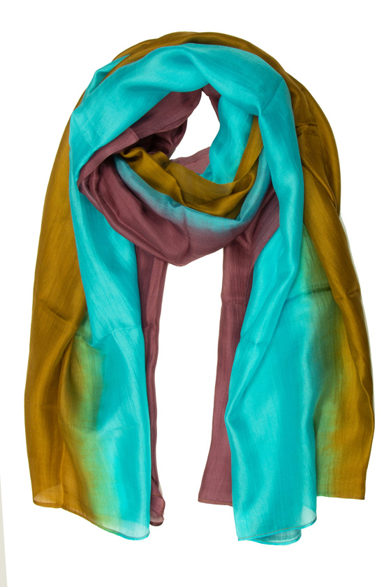 792654101 Seidenschal längsgestreift rotbraun-türkis-curry