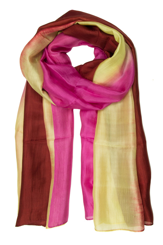 792654102 Seidenschal längsgestreift kastanienbraun-gelb-fuchsia