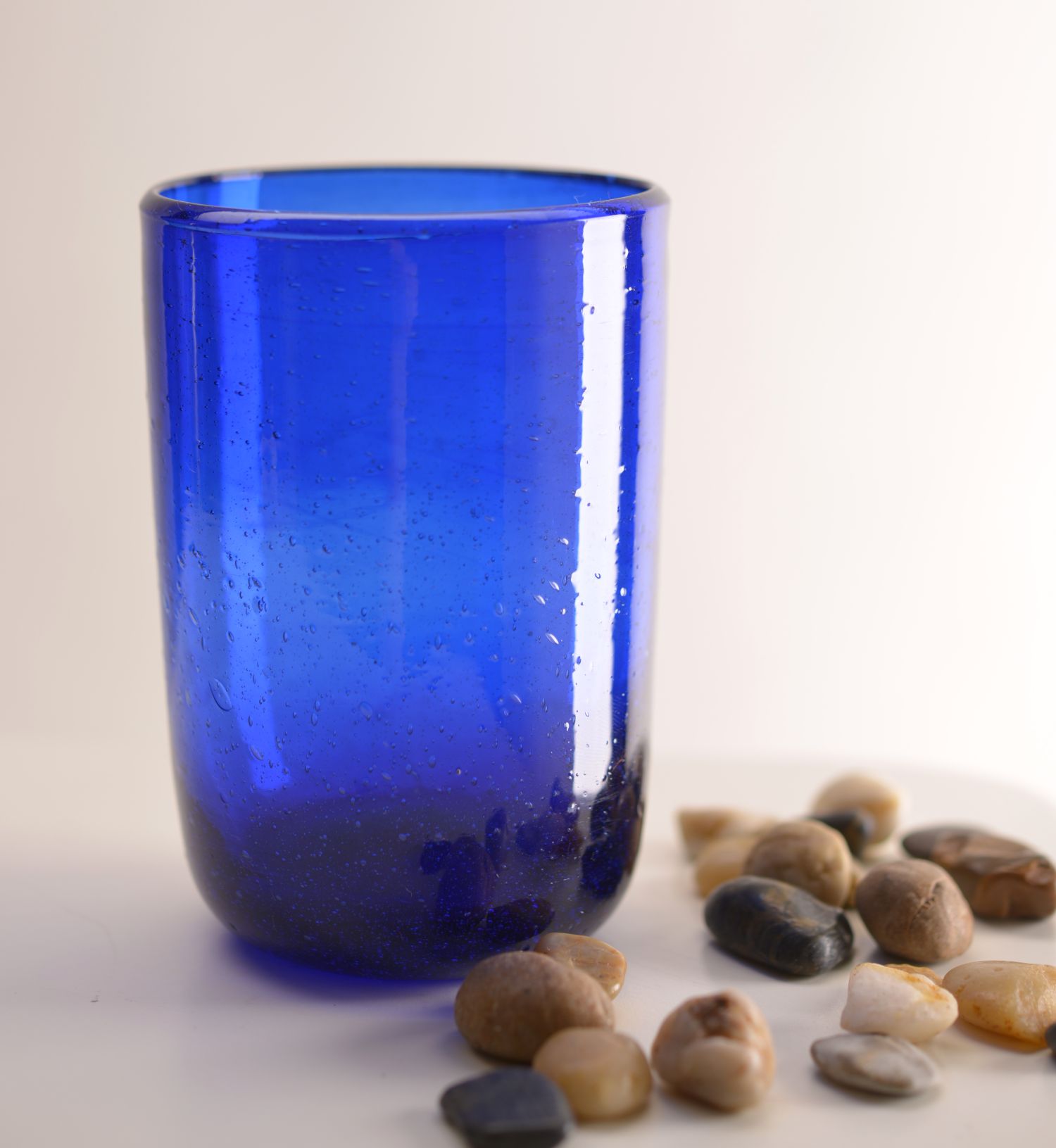recyceltes Glas, mundgeblasen, blau, geeignet für die Spülmaschine, H 11 cm, Ø 7,5 cm