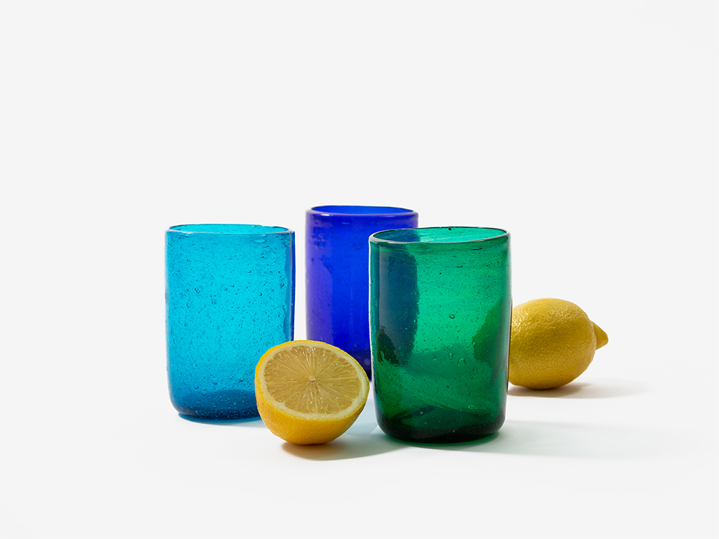 recyceltes Glas, mundgeblasen, türkis, geeignet für die Spülmaschine, H 11 cm, Ø 7,5 cm