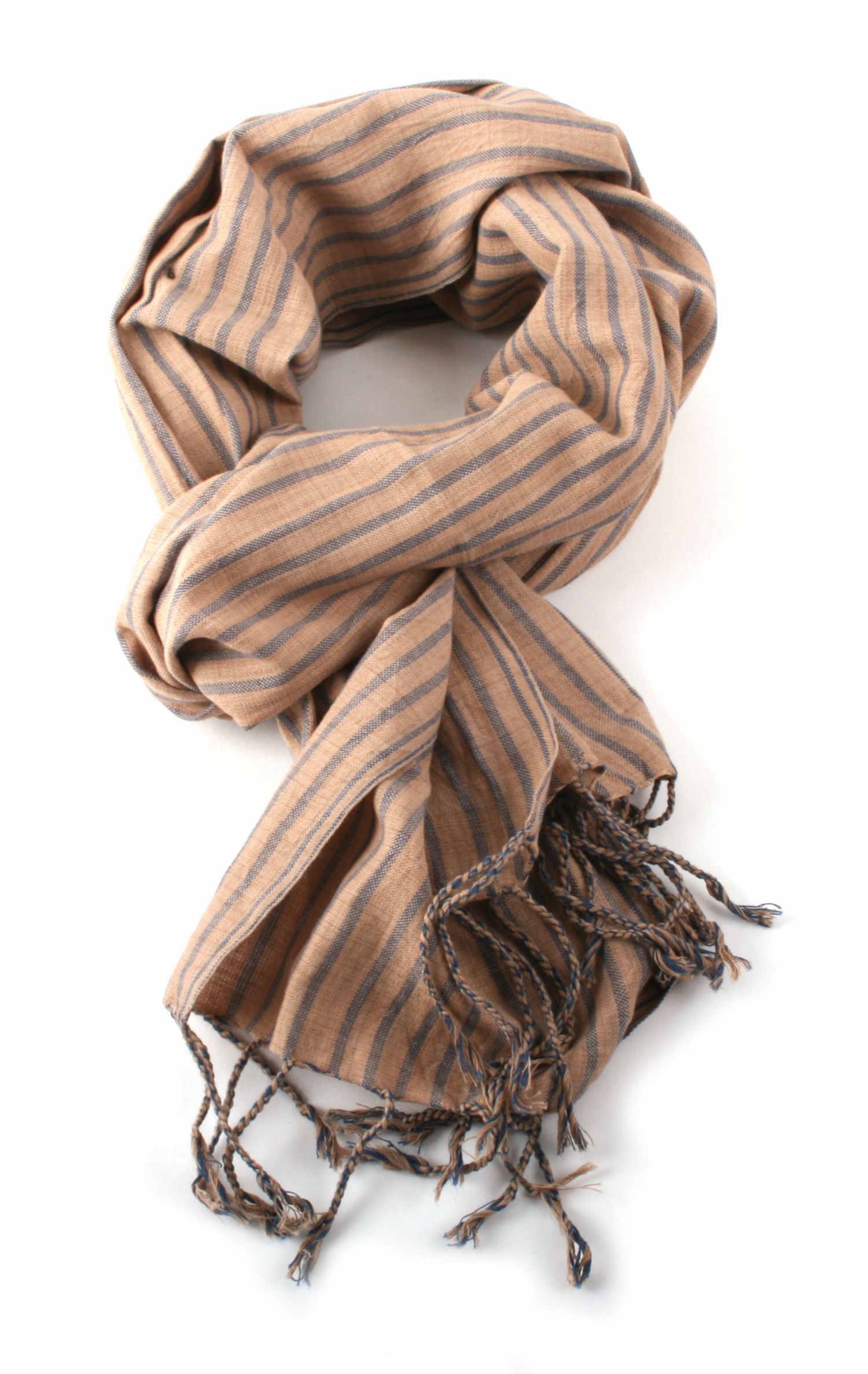 handgewebt, 100% Baumwolle aus kbA, mit Pflanzenfarben gefärbt, gestreift, sandfarben, 45 x 180 cm