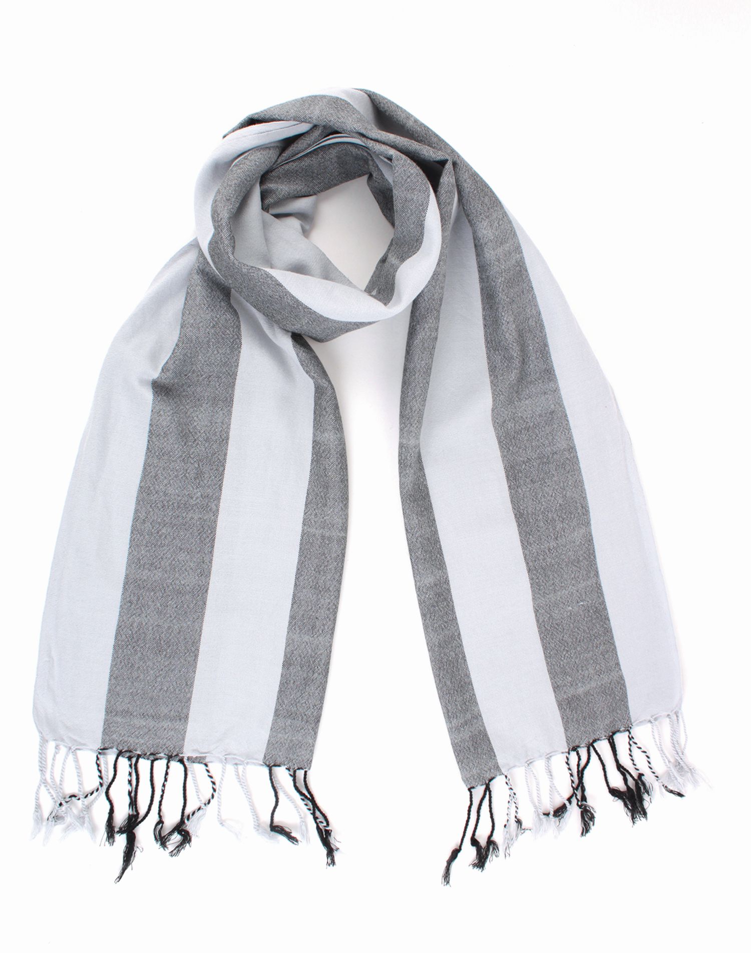 100% Baumwolle aus kbA, handgewebt, mit Pflanzenfarben gefärbt, gestreift, grau-schwarz, 45 x 180 cm
