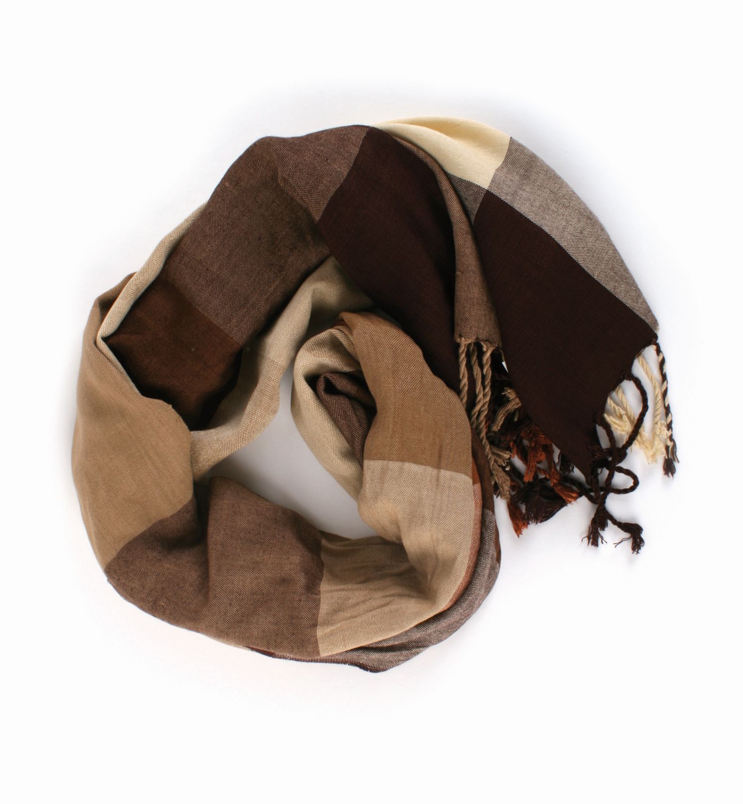100% Viskose, handgewebt, braun-kariert, 60 x 180 cm