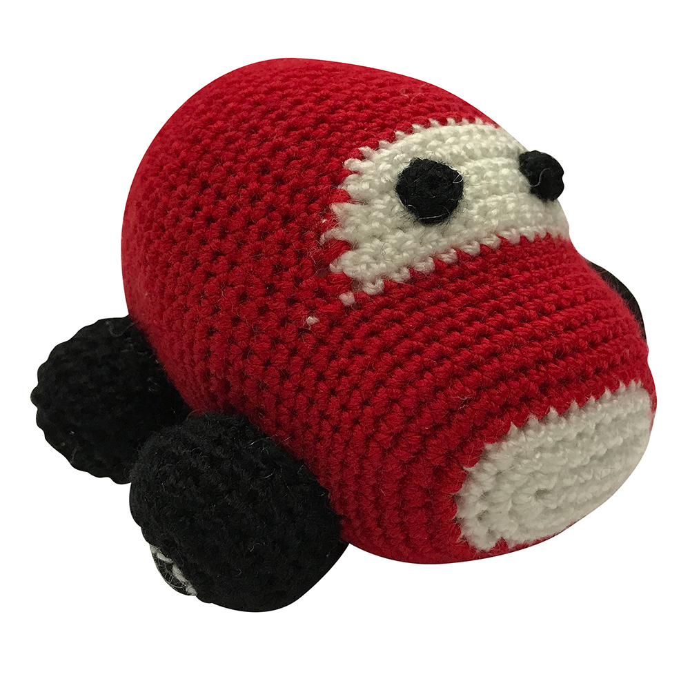 AM1-61-004-03 Rassel Auto, gehäkelt, rot, Polyacryl, D8