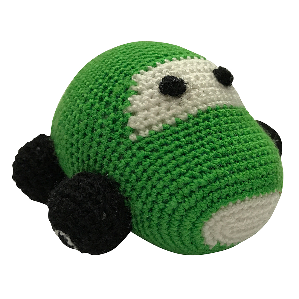 AM1-61-004-06 Rassel Auto, gehäkelt, grün, Polyacryl, D8