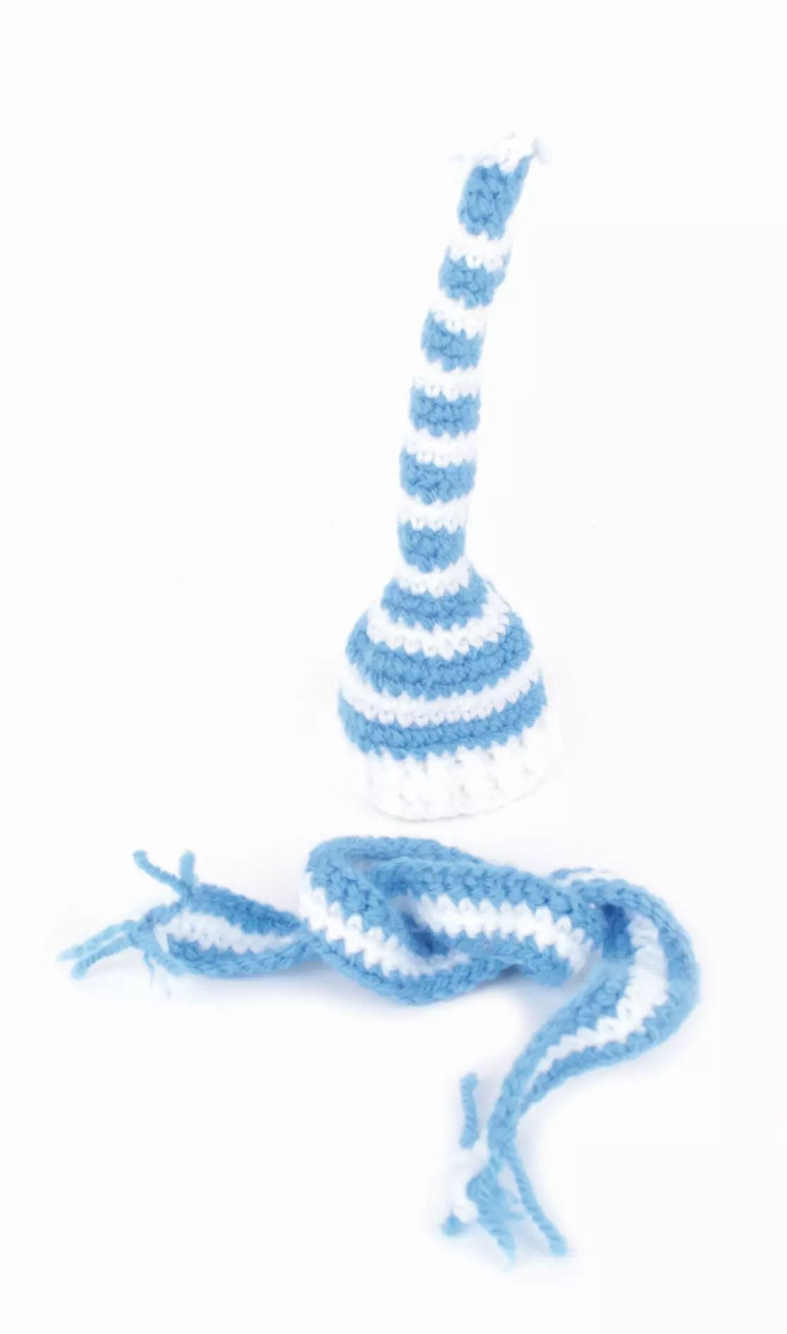 Infozeilebestehend aus Mütze und Schal, 100% Polyacryl, gehäkelt, verschiedene Farben, Mütze H 16 cm und Schal L 40 cm