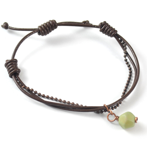 ASC-103 Armband aus Leder und einer Kupferkette mit Taguaanhänger, moos