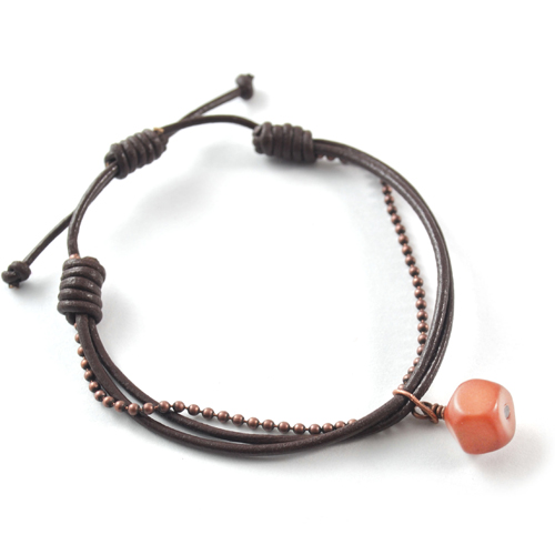 ASC-105 Armband aus Leder und einer Kupferkette mit Taguaanhänger, aprikose