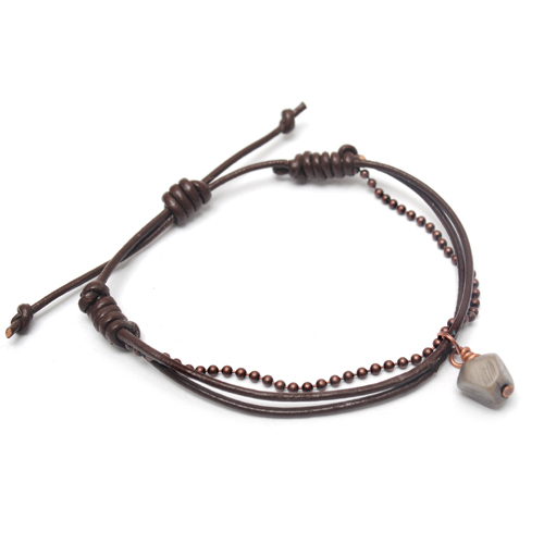 ASC-107 Armband aus Leder und einer Kupferkette mit Taguaanhänger, perlgrau