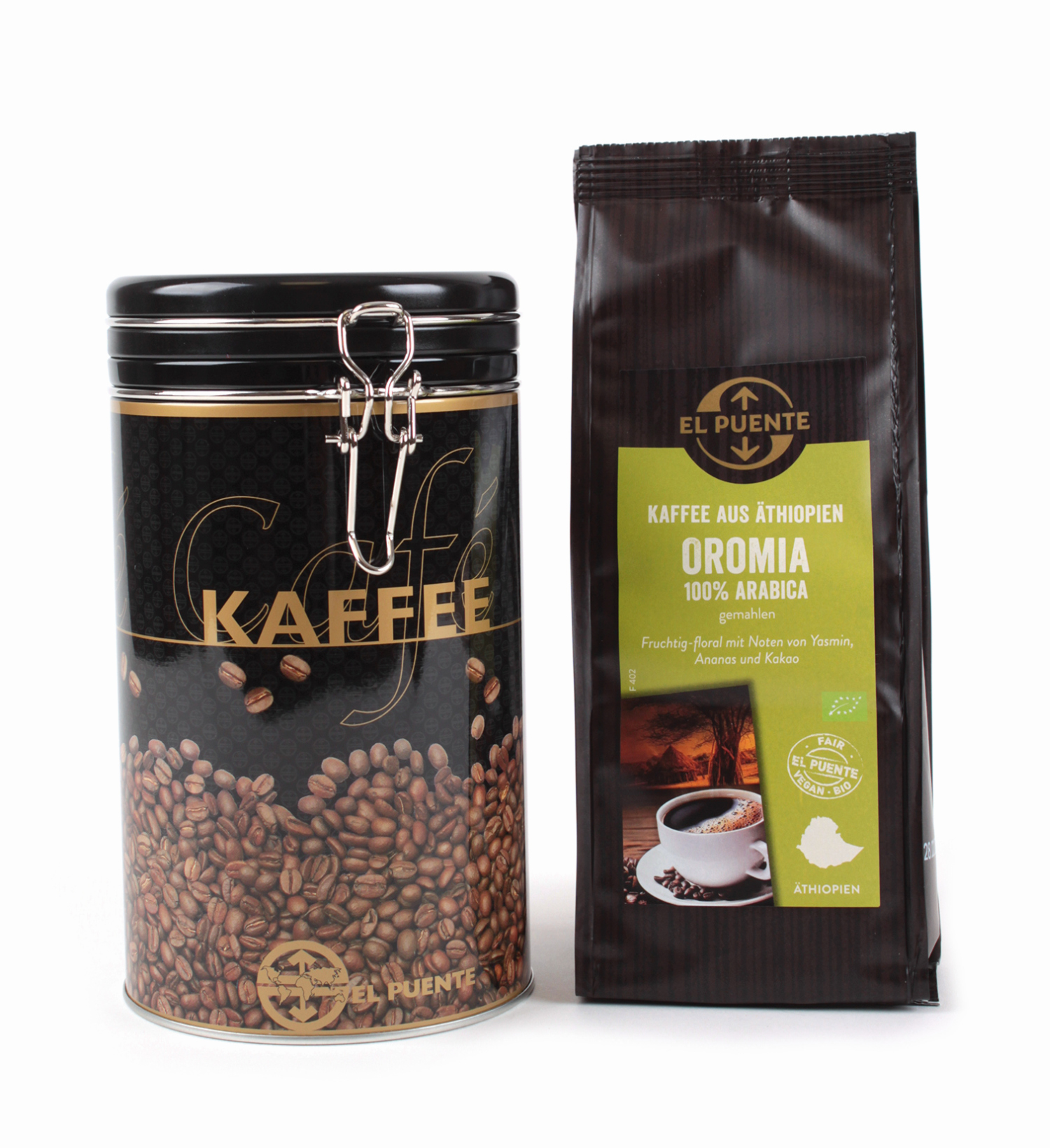 AT1-13-130 Oromia-Set - Bio-Kaffee gemahlen 250 g mit Dose