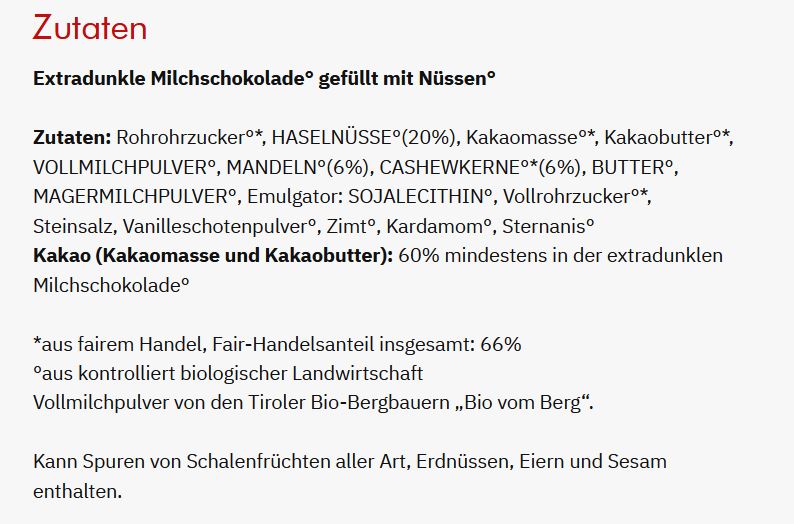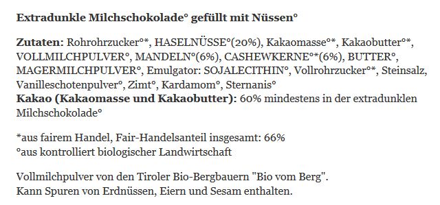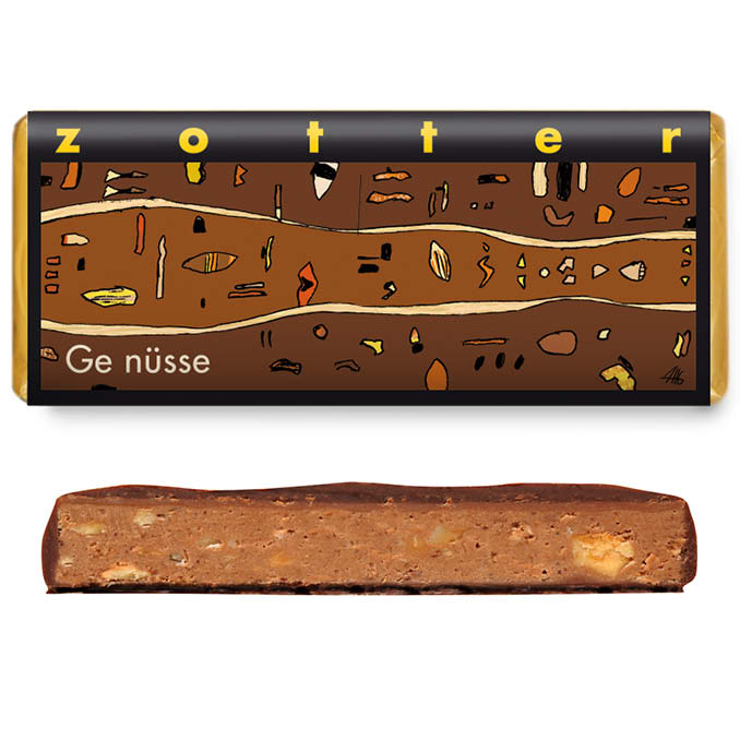 AT1-19-008 Zotter Schokolade Genüsse, 70g, bio°, in 60% extradunkler Bergmilchschokolade