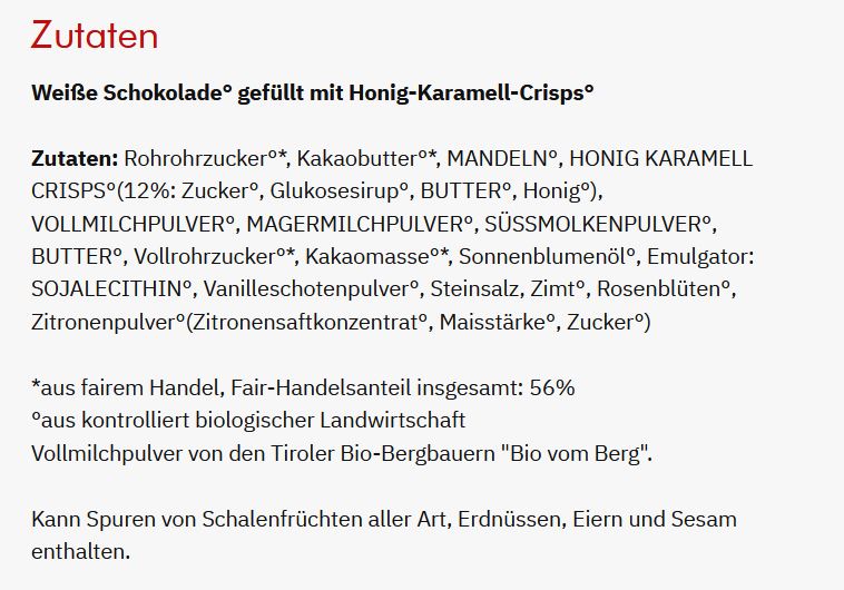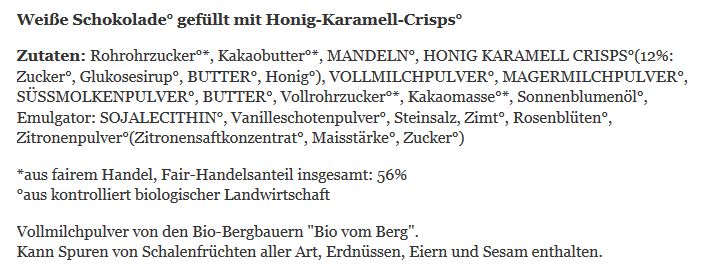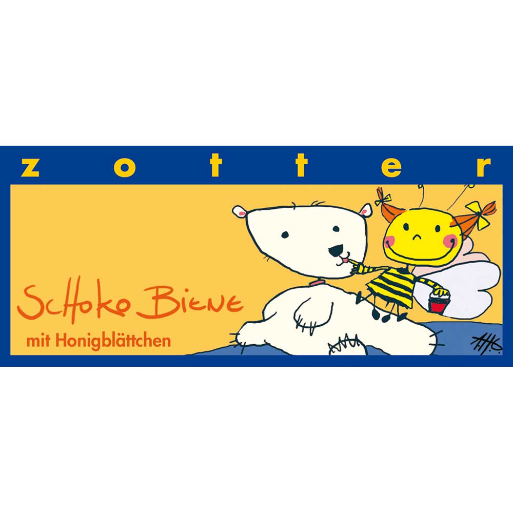 AT1-19-014 Zotter Schokolade SchokoBiene mit Honigblättchen, bio°, 70g, in 30% weißer Schokolade