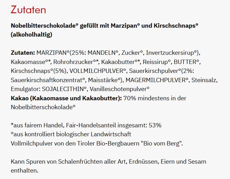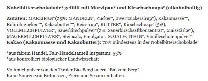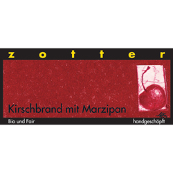 AT1-19-018 Zotter Schokolade Kirschschnaps mit Marzipan, 70g, bio°, in 70% Nobelbitterschokolade, Alkohol >2%