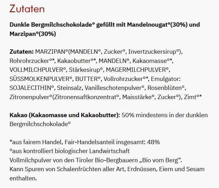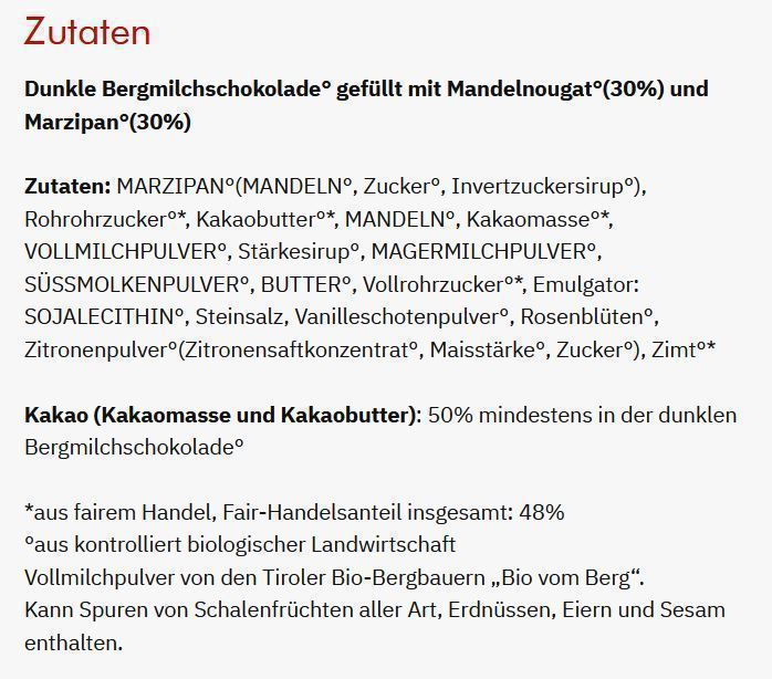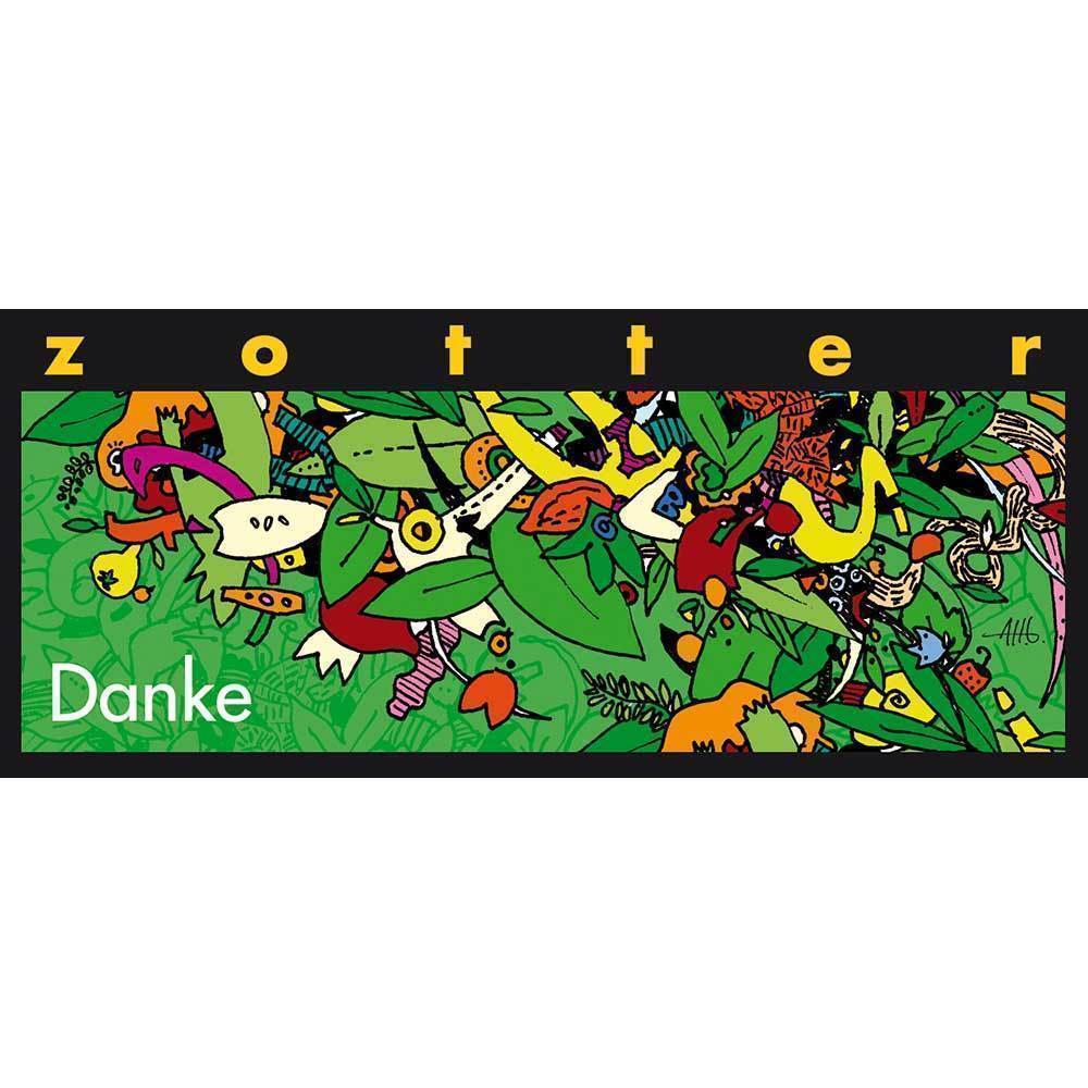 AT1-19-101 Zotter Schokolade "Danke"- Marzipan und Mandeln, 70g, bio°, in 50% dunkler Bergmilchschokolade