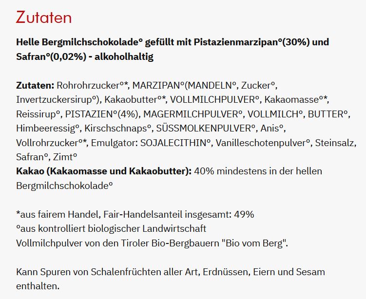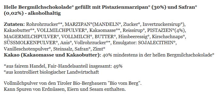 AT1-19-185 Zotter Schokolade Safran und Pistazien, 70g, bio°, in 40% heller Bergmilchschokolade, alkoholhaltig