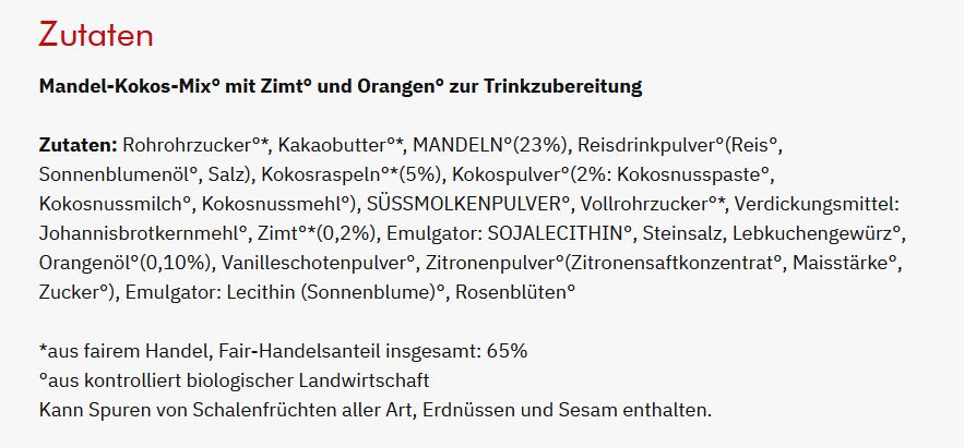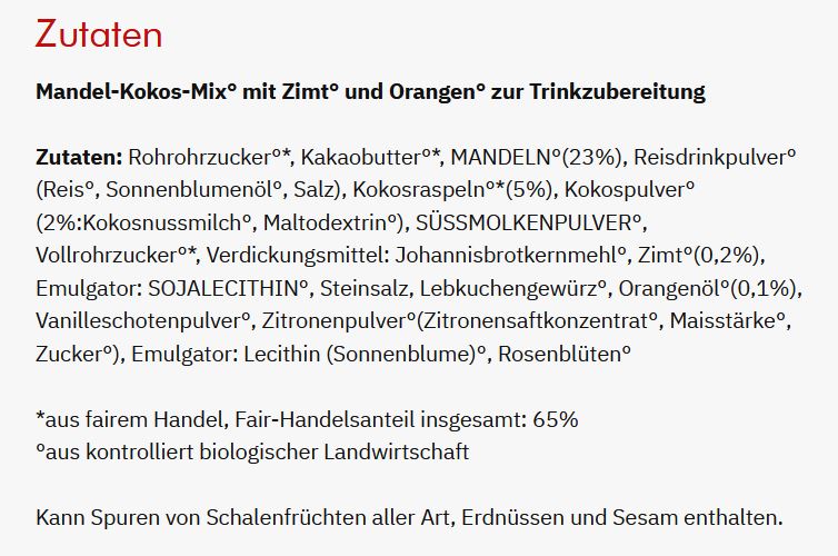 AT1-19-242 Zotter TrinkSchokolade "Winterzauber"- Mandel Kokos mit Zimt und Orange, bio°, 5x22g