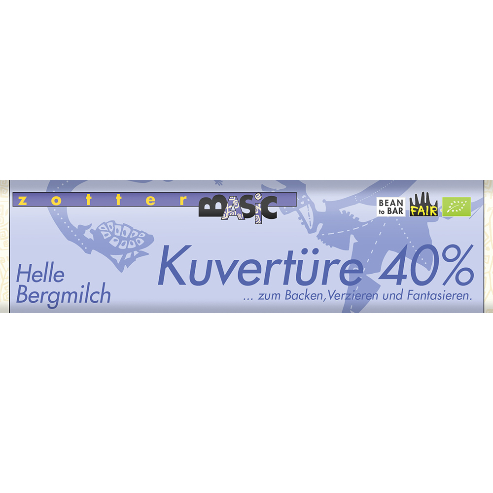 AT1-19-603 Zotter Edel- Kuvertüre 40% Helle Milchschokolade, bio°, 130g