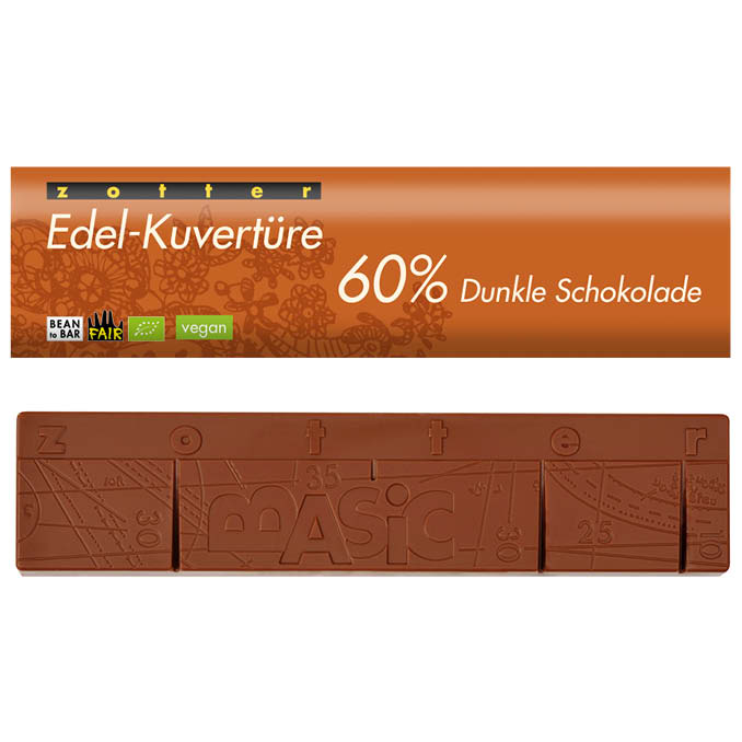 at1-19-605 - Zotter Edel- Kuvertüre 60% dunkle Schokolade, bio°, 130g, vegan