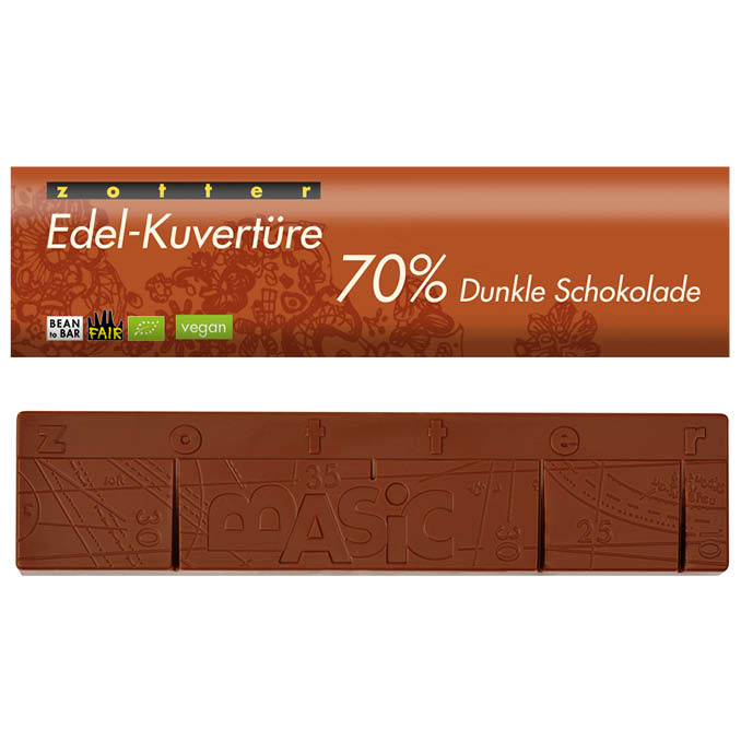 at1-19-606 - Zotter Edel- Kuvertüre 70% dunkle Schokolade, bio°, 130g, vegan