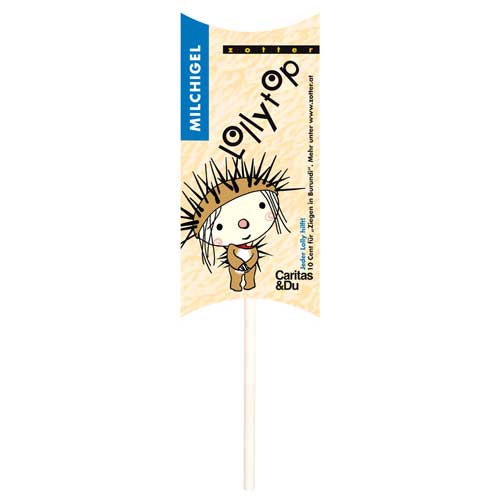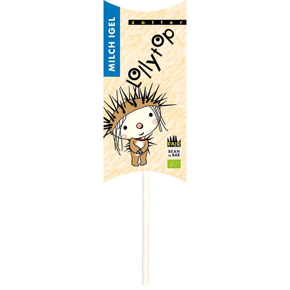 AT1-19-684 Zotter Choco Lolly Milch-Igel, Schokolutscher am Stiel, 20g, bio°
