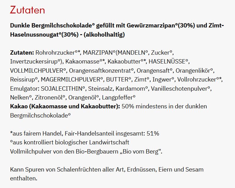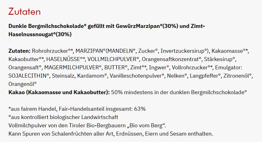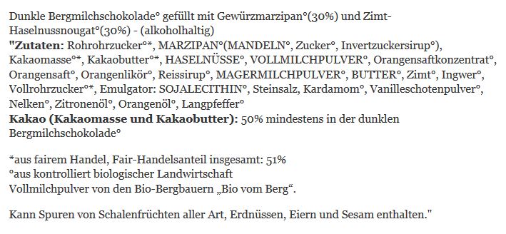 AT1-20-050 Zotter Schokolade "Fröhliche Weihnachten" - Gewürzmarzipan auf Zimtnougat, bio°, 70g, in 50% dunkler Bergmilchschokolade, alkoholhaltig